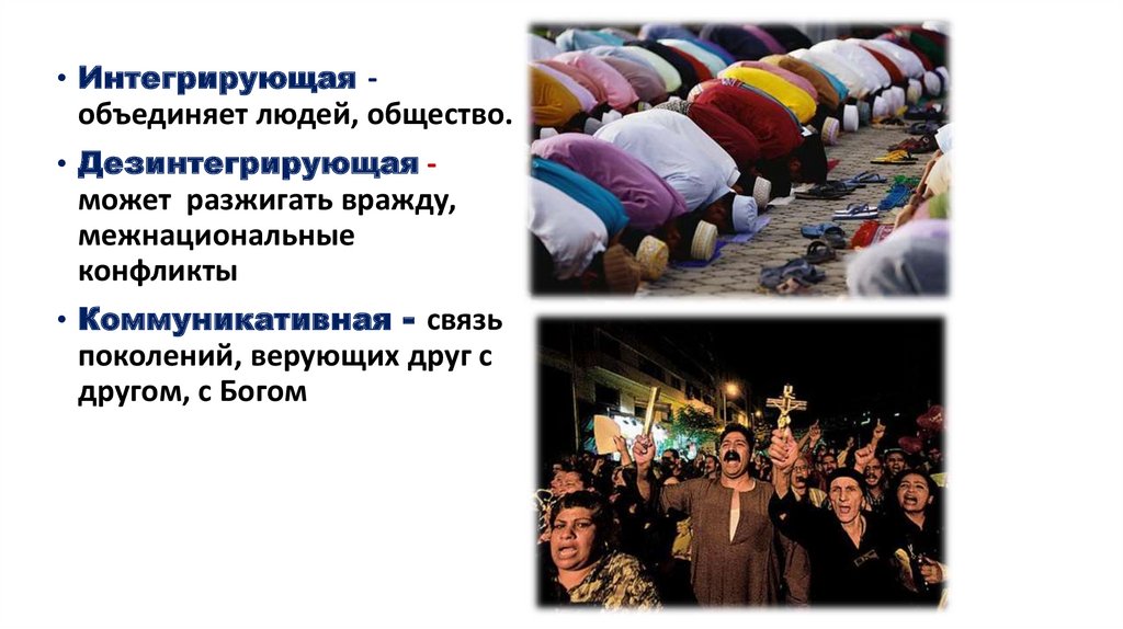 • Интегрирующая -объединяет людей, общество.