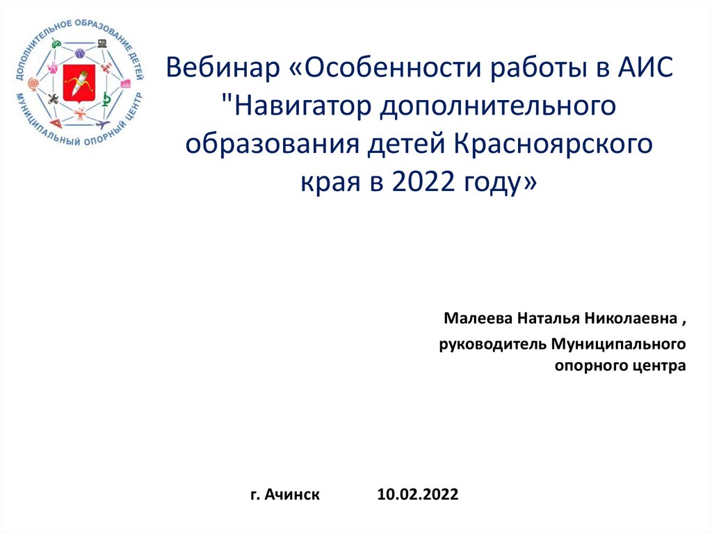 Вебинар «Особенности работы в АИС "Навигатор дополнительного образования детей Красноярского края в 2022 году»