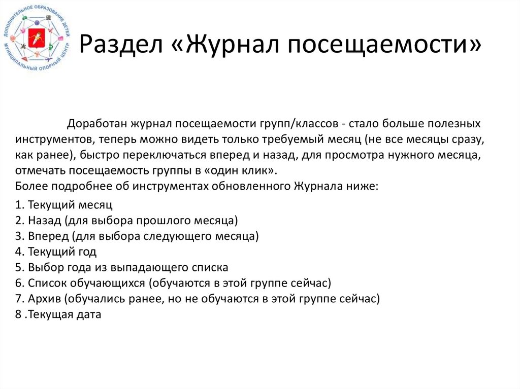Раздел «Журнал посещаемости»Доработан журнал посещаемости групп/классов - стало больше полезных