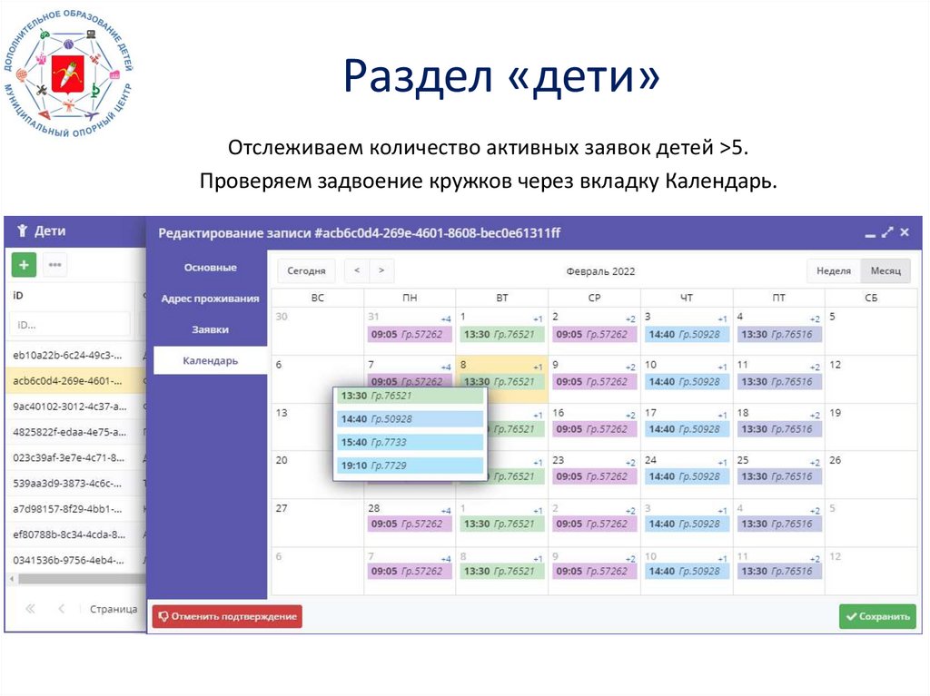 Раздел «дети»Отслеживаем количество активных заявок детей >5.