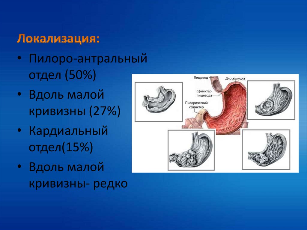 - развивается из перерожденныхклеток желудочного эпителия. 71-95% случаев