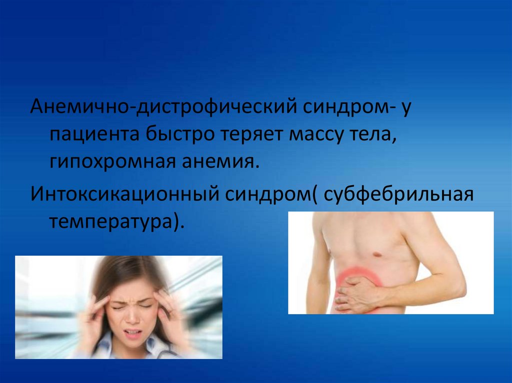 Анемично-дистрофический синдром- упациента быстро теряет массу тела,