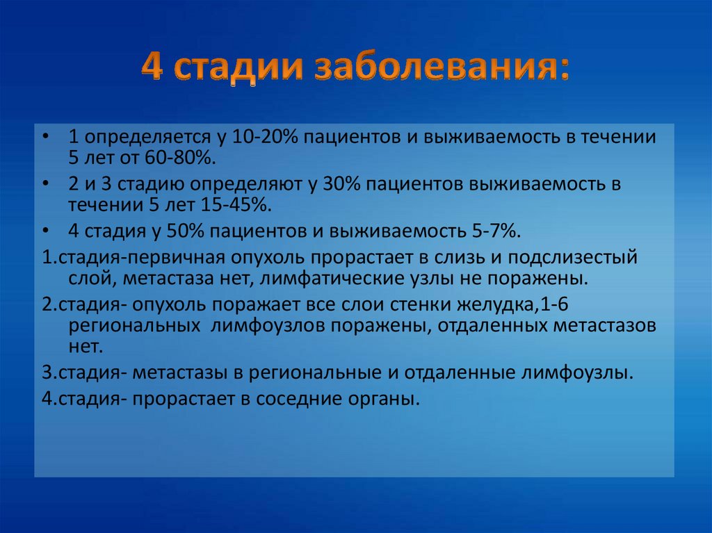 • 2 и 3 стадию определяют у 30% пациентов выживаемость в