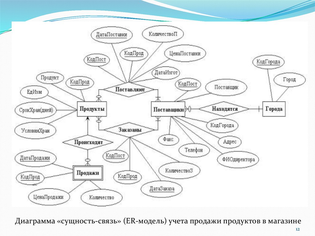 Диаграмма «сущность-связь» (ER-модель) учета продажи продуктов в магазине12