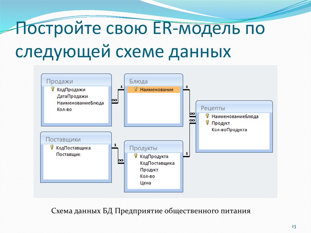 Постройте свою ER-модель последующей схеме данных
