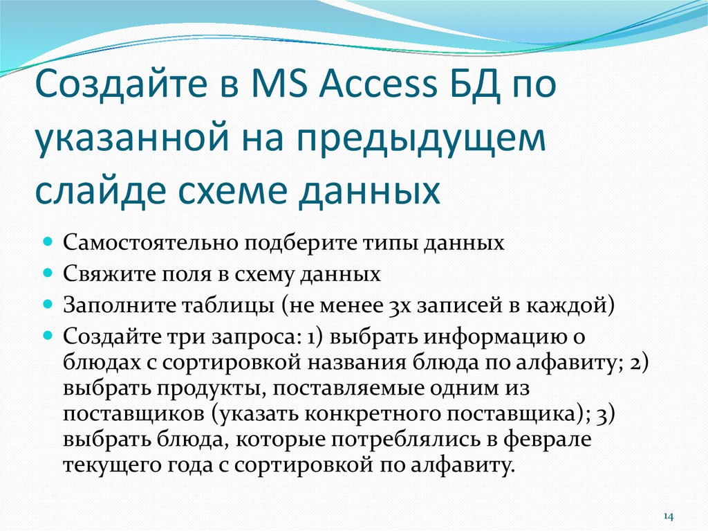 Создайте в MS Access БД поуказанной на предыдущем