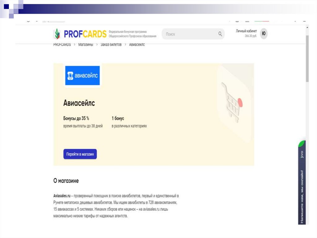 перенаправит Вас на сайт выбранного магазина.