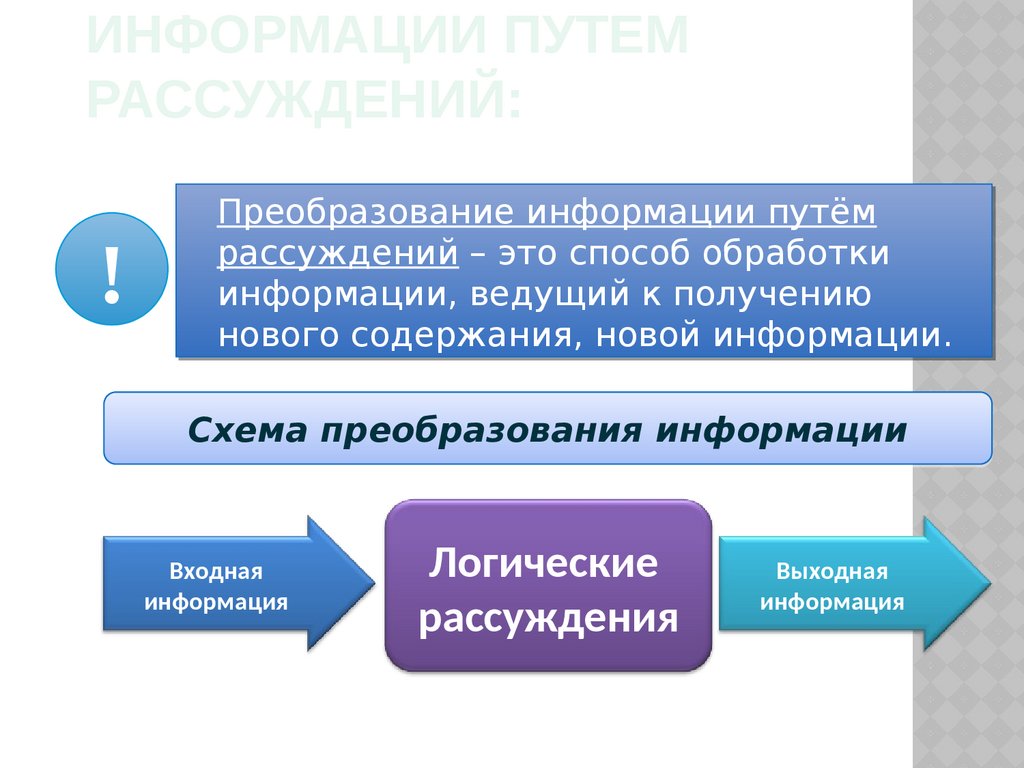 ИНФОРМАЦИИ ПУТЁМРАССУЖДЕНИЙ: