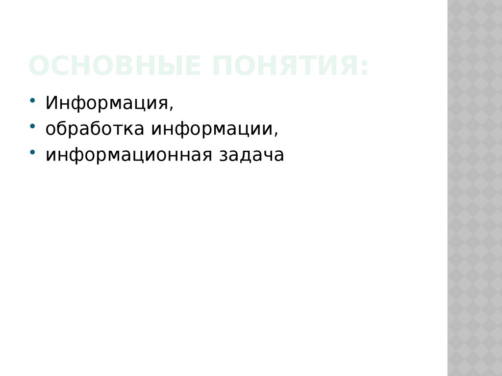 ОСНОВНЫЕ ПОНЯТИЯ:Информация,