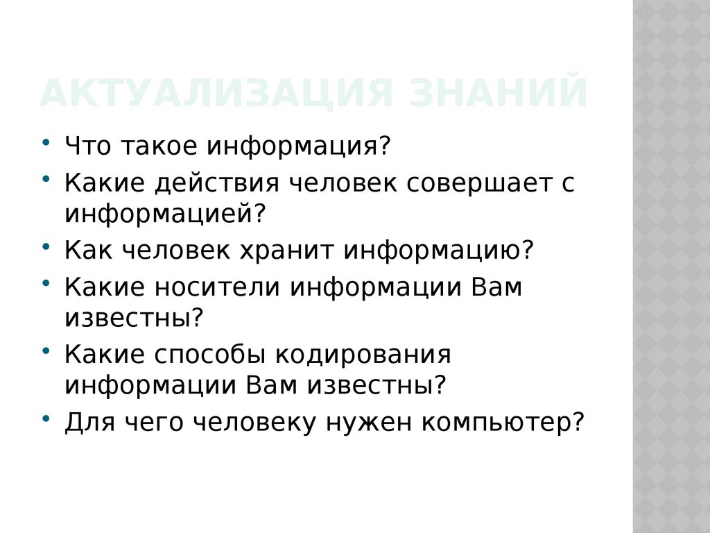 АКТУАЛИЗАЦИЯ ЗНАНИЙЧто такое информация?