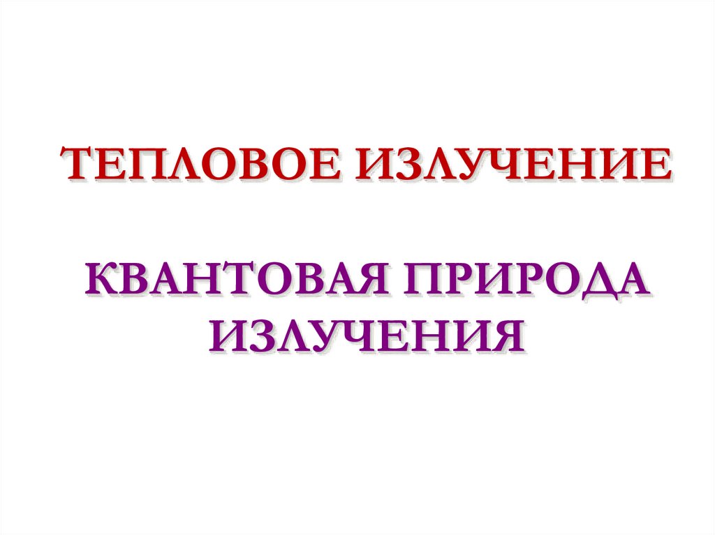 ТЕПЛОВОЕ ИЗЛУЧЕНИЕКВАНТОВАЯ ПРИРОДА