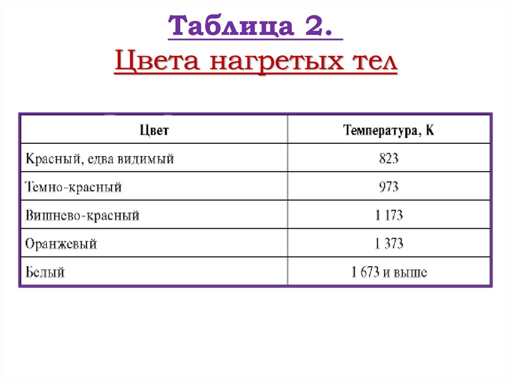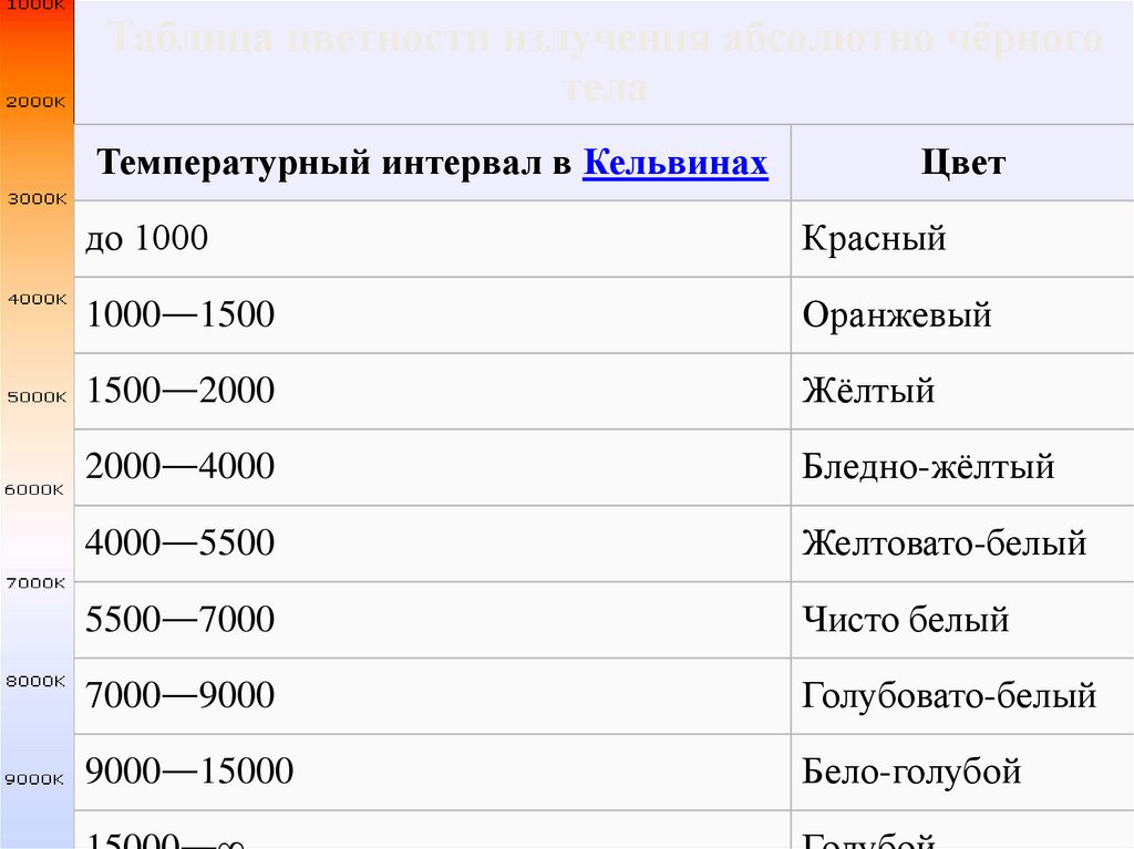 Таблица цветности излучения абсолютно чёрноготела