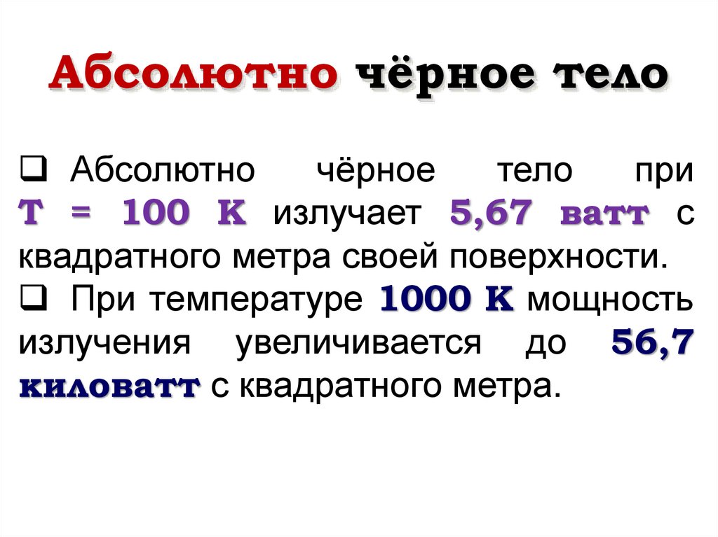 • Абсолютно черным называется такое тело,