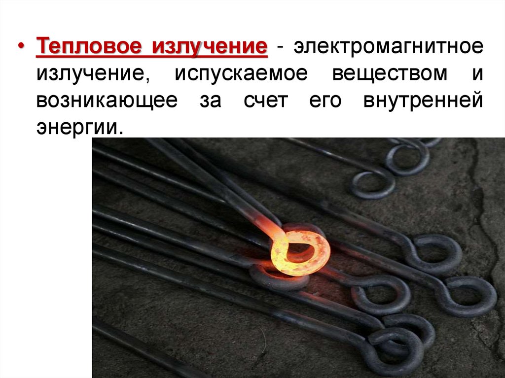 • Тепловое излучение - электромагнитноеизлучение, испускаемое веществом и