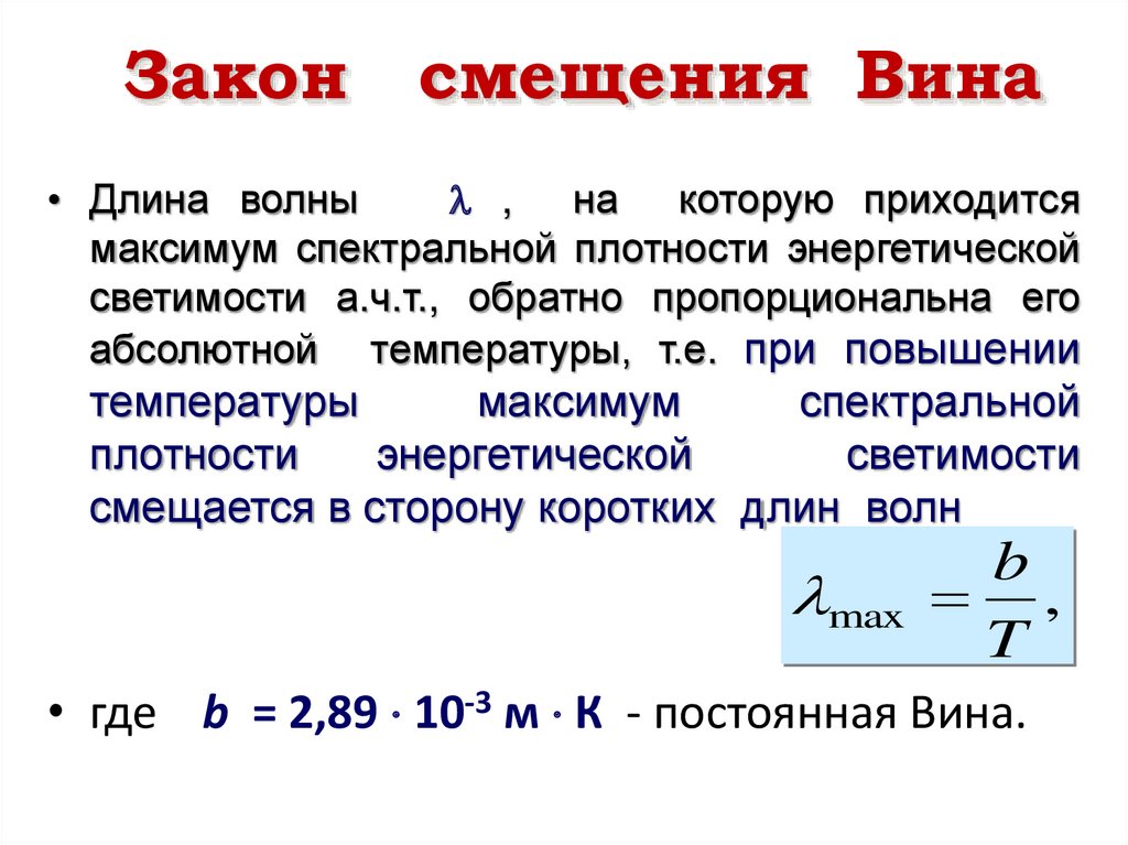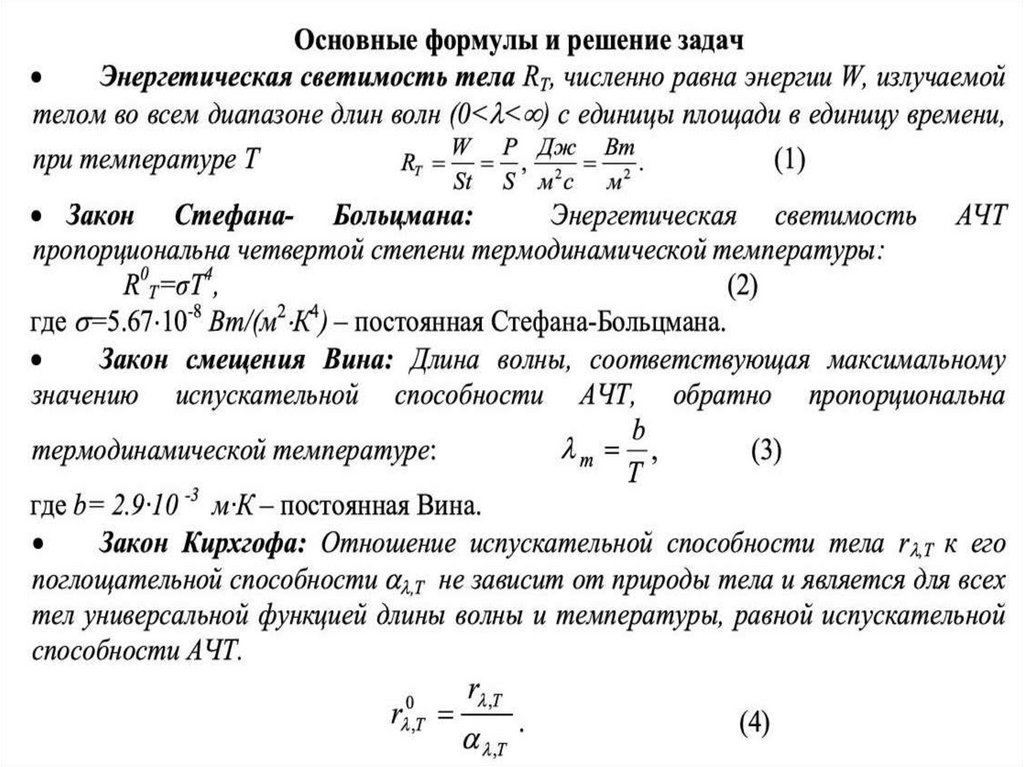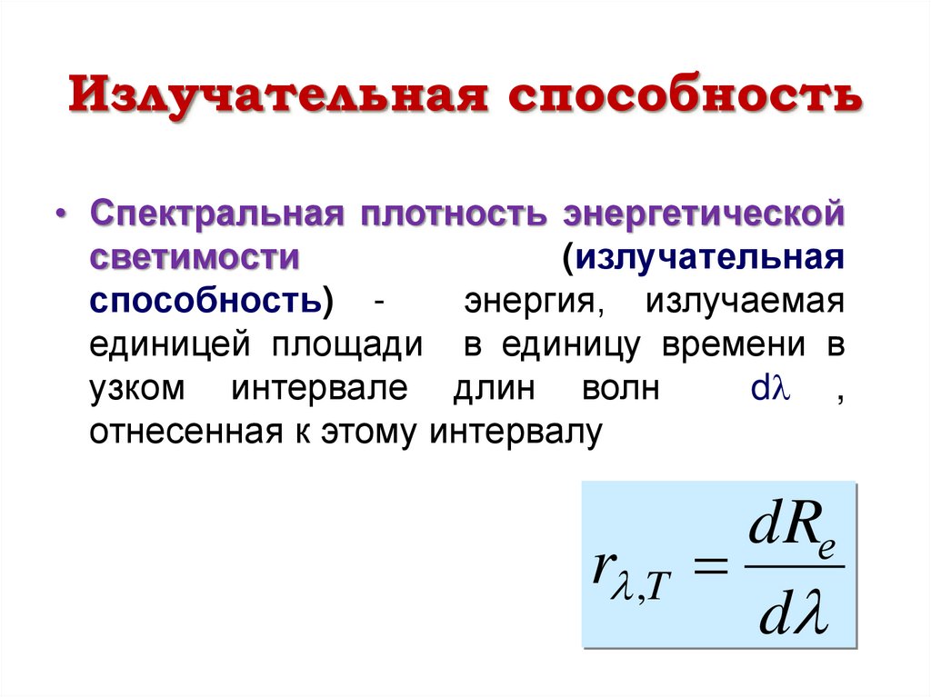 Излучательная способность• Спектральная плотность энергетической