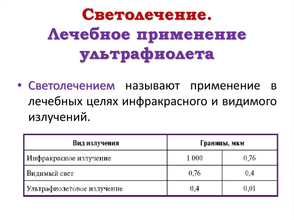 • Светолечением называют применение в