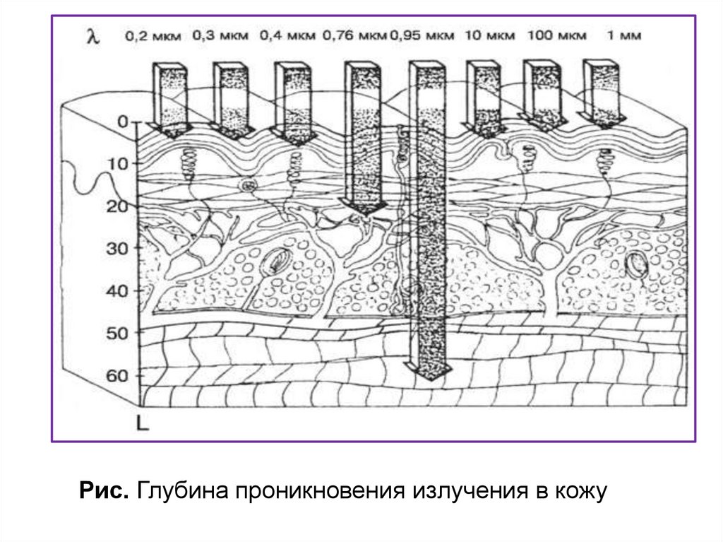 Рис. Глубина проникновения излучения в кожу47.