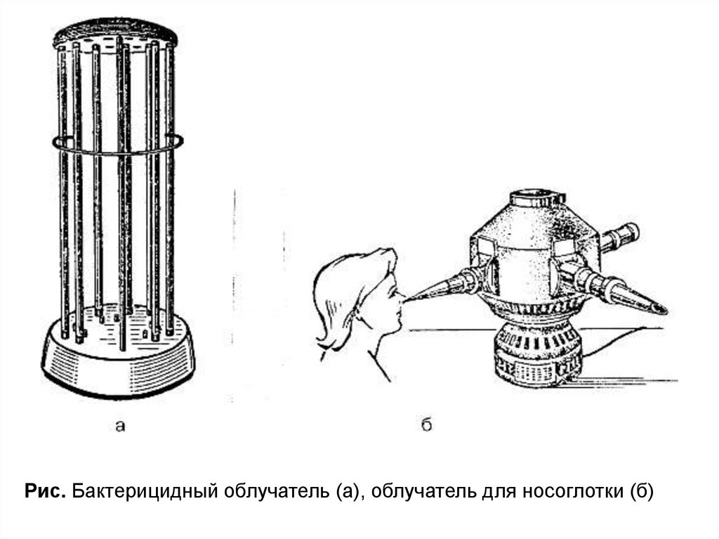 Рис. Бактерицидный облучатель (а), облучатель для носоглотки (б)50.