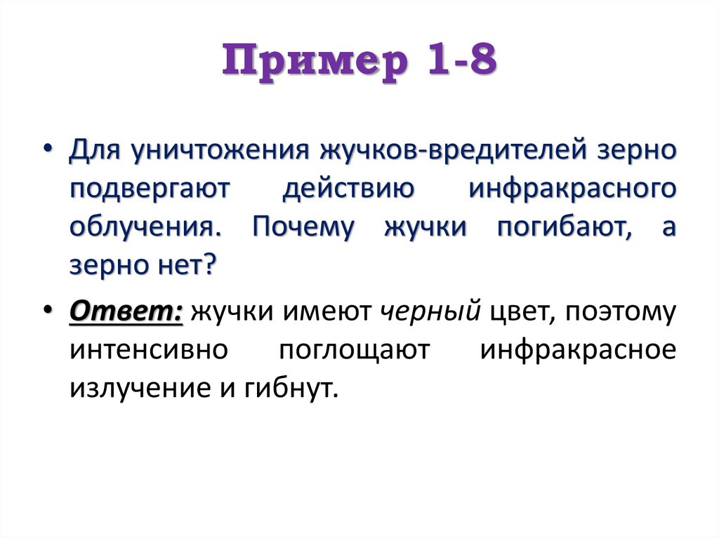 Пример 1-8• Для уничтожения жучков-вредителей зерно