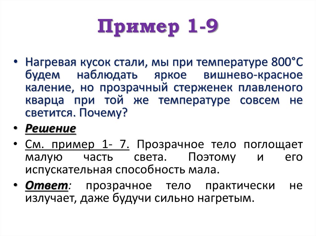 • См. пример 1- 7. Прозрачное тело поглощает