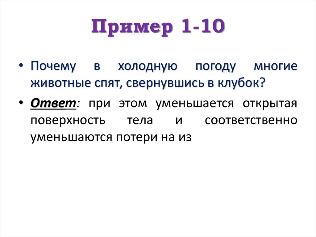 Пример 1-10• Почему в холодную погоду многие
