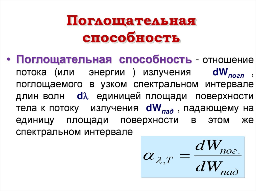 • Поглощательная способность - отношение