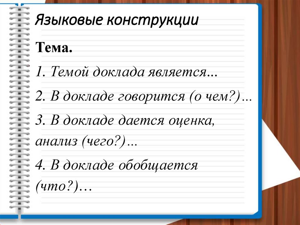 какой-н. темы. Прочитать д. Выступить с докладом.