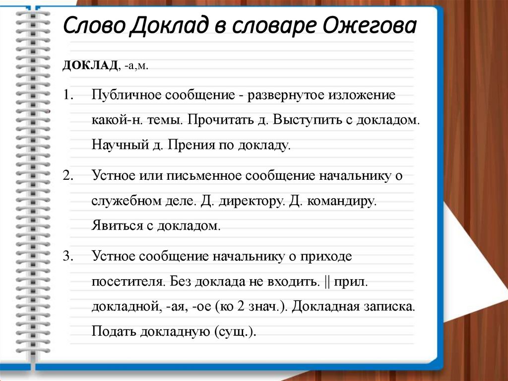 Слово Доклад в словаре ОжеговаДОКЛАД, -а,м.
