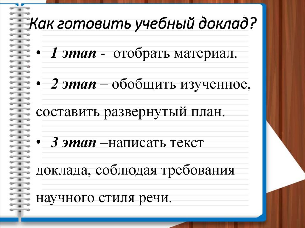 Как готовить учебный доклад?• 1 этап - отобрать материал.