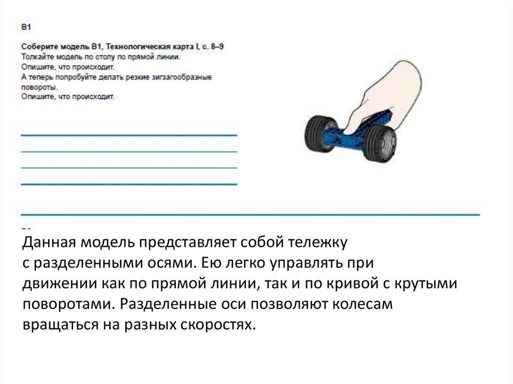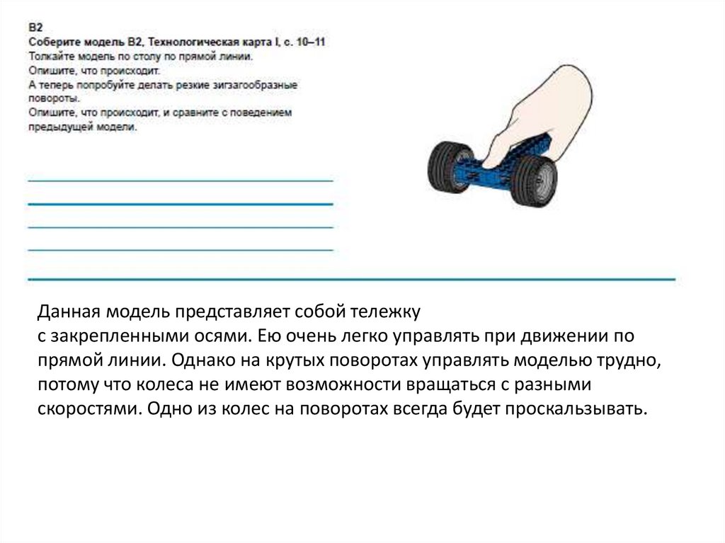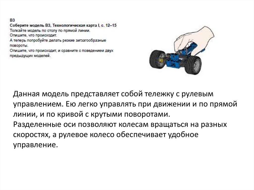 Данная модель представляет собой тележку с рулевымуправлением. Ею легко управлять при движении и по прямой