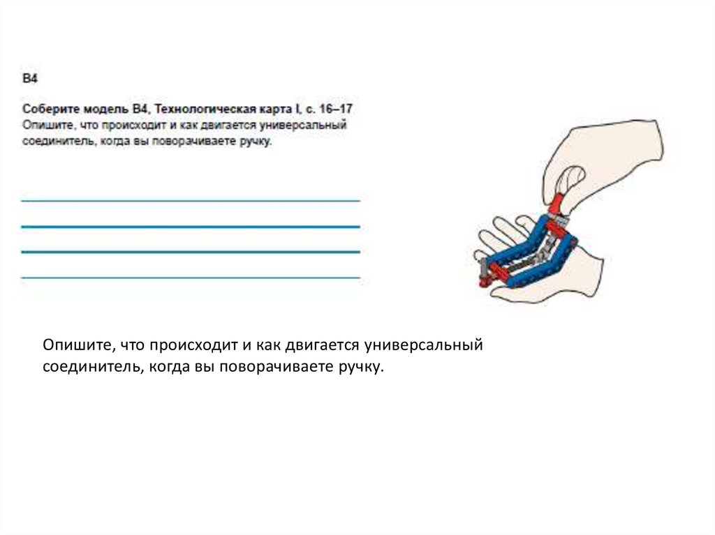 Опишите, что происходит и как двигается универсальныйсоединитель, когда вы поворачиваете ручку.