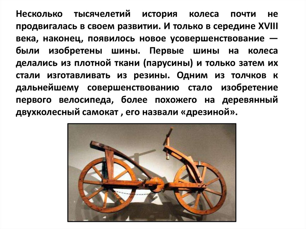 Несколько тысячелетий история колеса почти непродвигалась в своем развитии. И только в середине XVIII