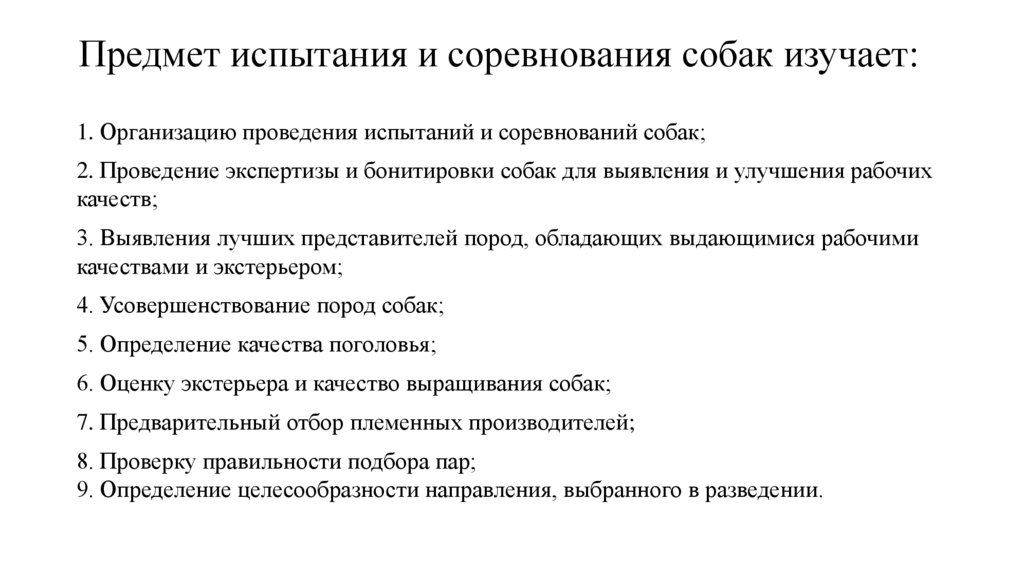 Предмет испытания и соревнования собак изучает:1. Организацию проведения испытаний и соревнований собак;