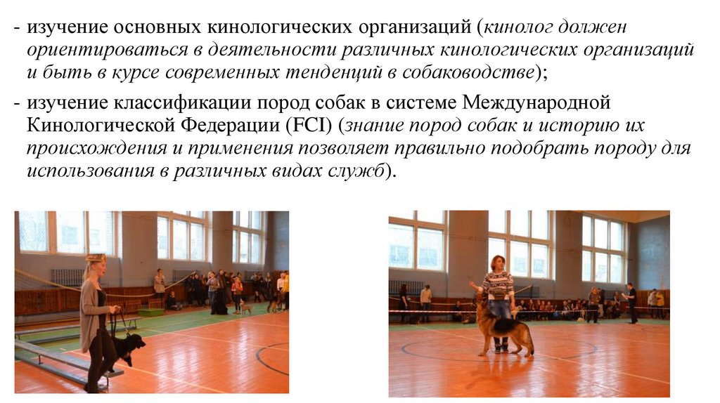 - изучение основных кинологических организаций (кинолог долженориентироваться в деятельности различных кинологических организаций