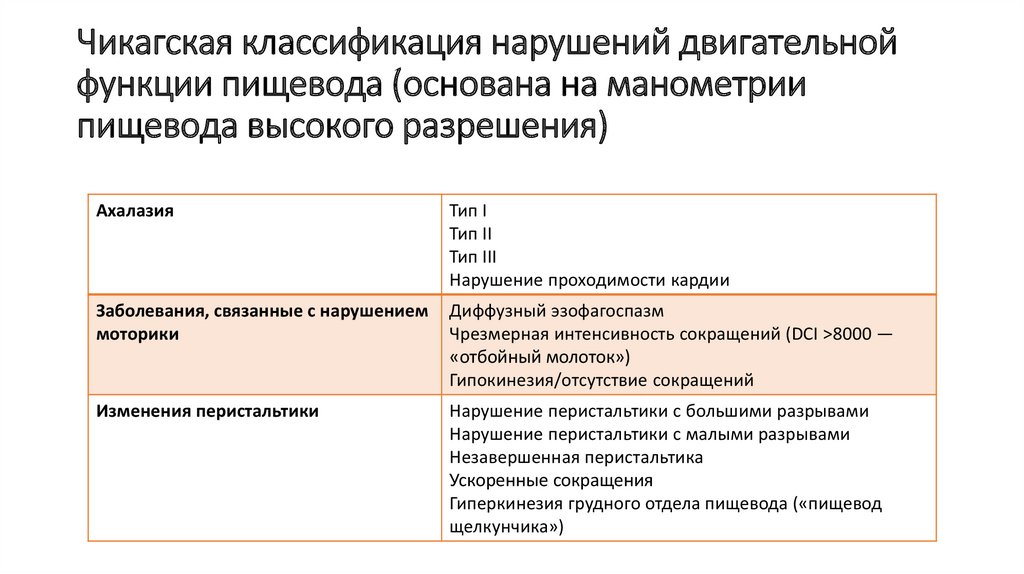 Чикагская классификация нарушений двигательнойфункции пищевода (основана на манометрии