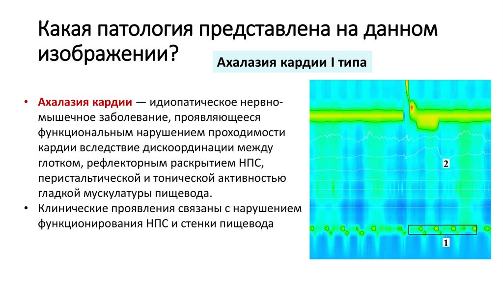 • Ахалазия кардии — идиопатическое нервномышечное заболевание, проявляющееся