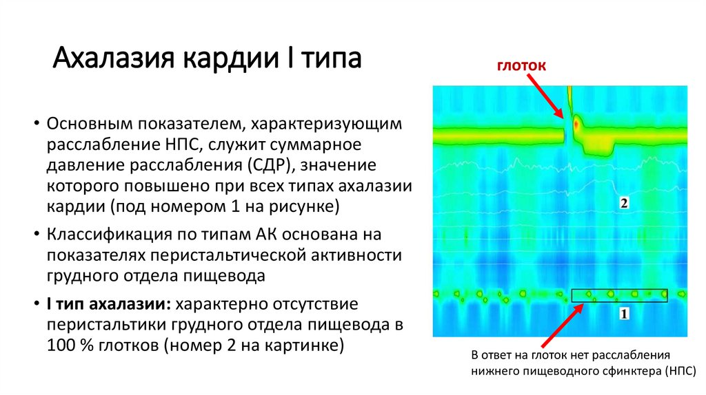 Ахалазия кардии I типа• Основным показателем, характеризующим
