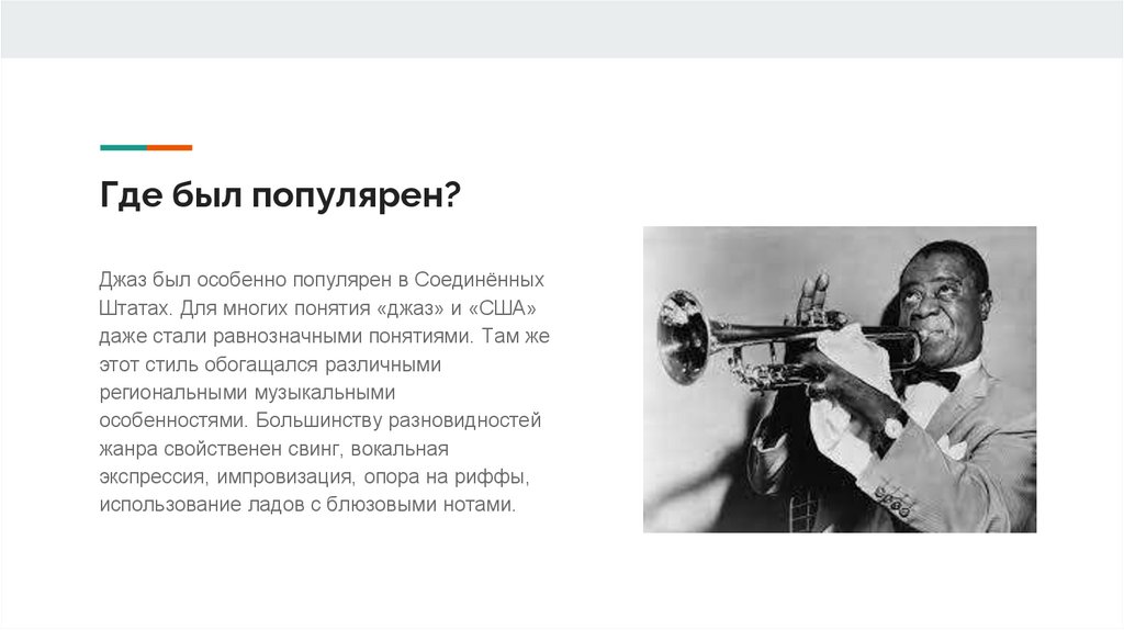 Где был популярен?Джаз был особенно популярен в Соединённых