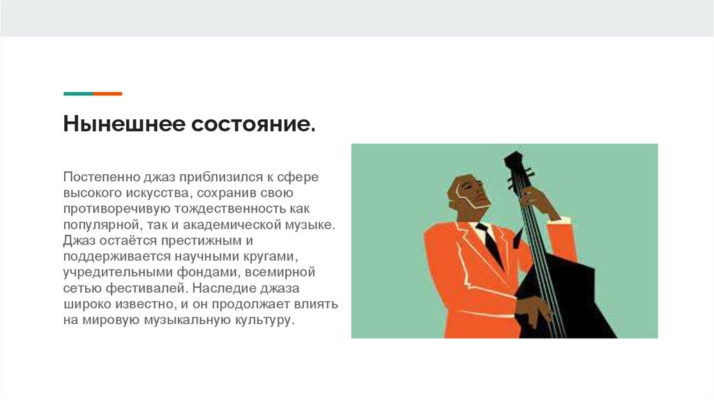 Нынешнее состояние.Постепенно джаз приблизился к сфере