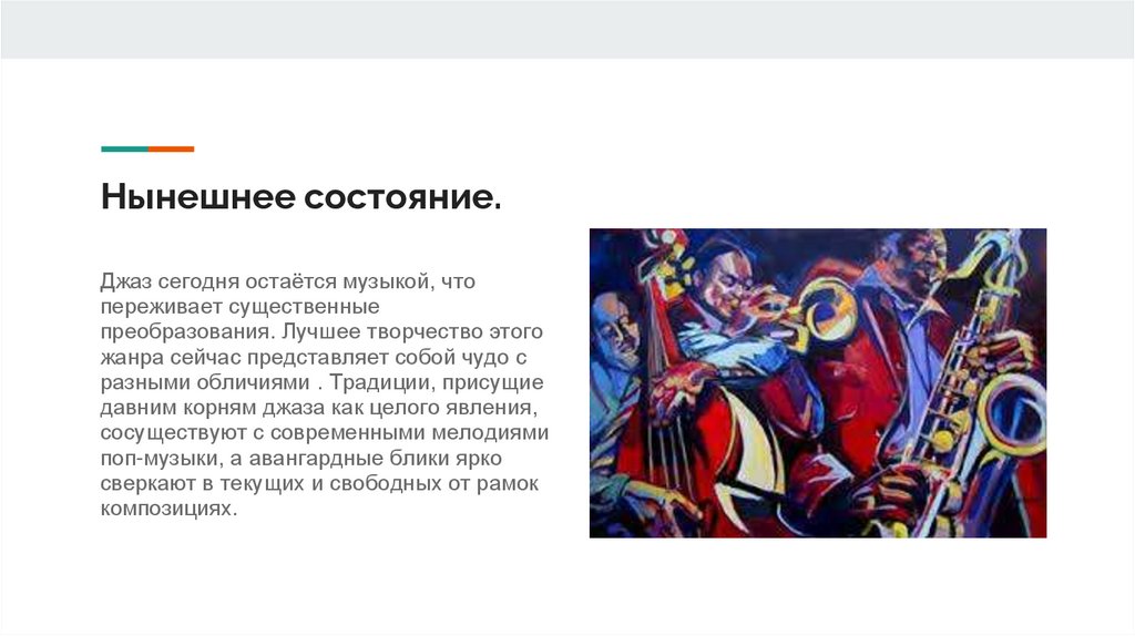 Нынешнее состояние.Джаз сегодня остаётся музыкой, что