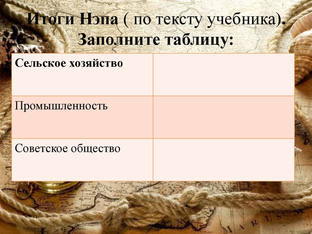 Итоги Нэпа ( по тексту учебника).Заполните таблицу: