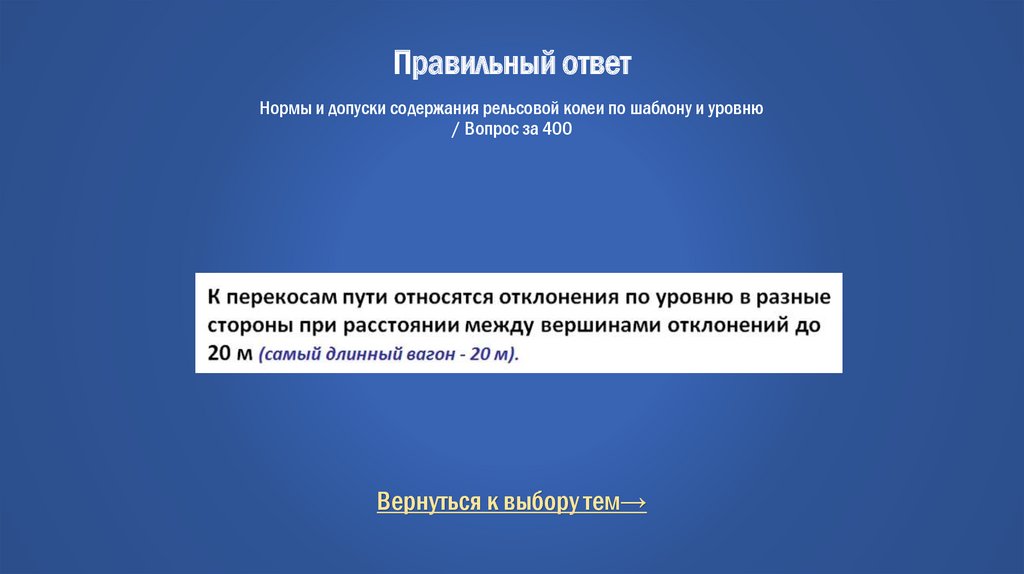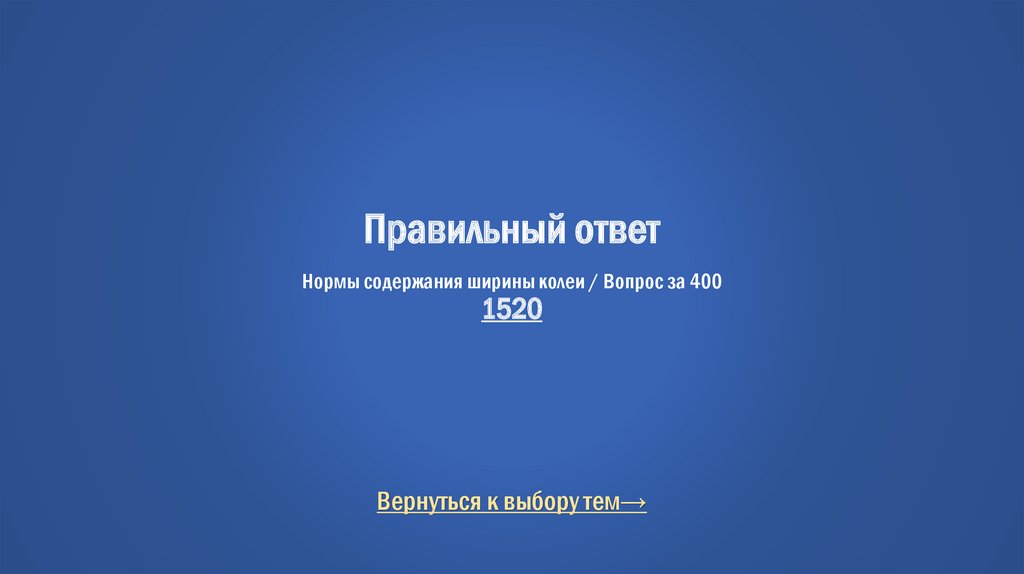 Правильный ответНормы содержания ширины колеи / Вопрос за 400