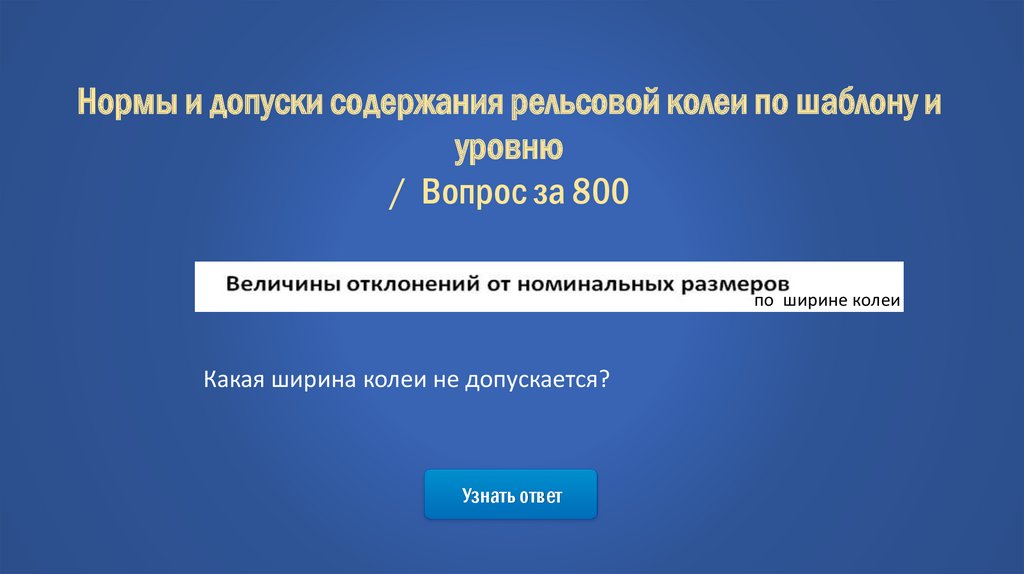 Правильный ответНормы содержания ширины колеи / Вопрос за 800