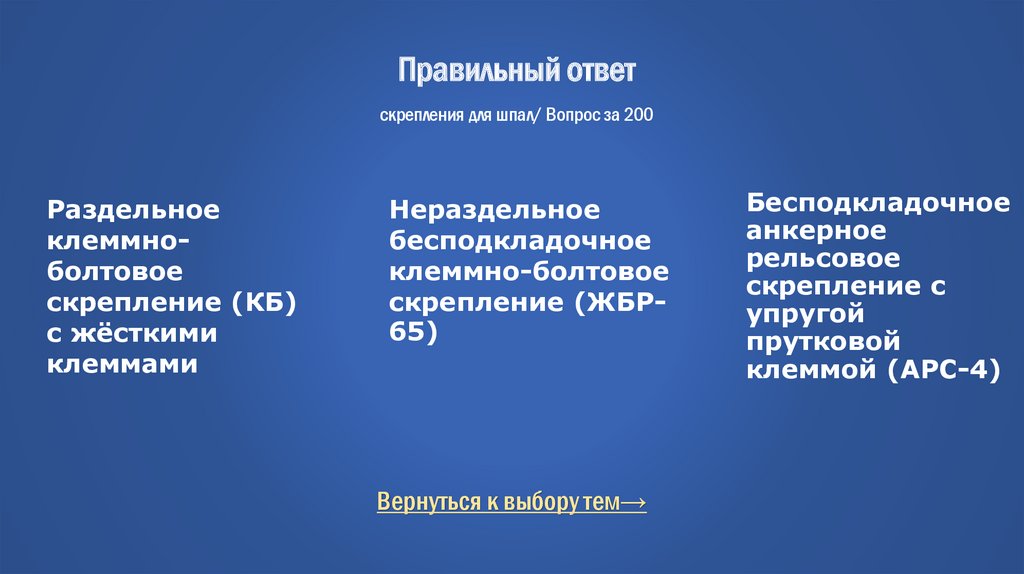 Правильный ответскрепления для шпал/ Вопрос за 200