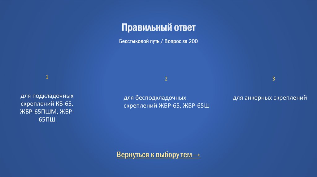 Правильный ответСкрепления для шпал/ Вопрос за 400