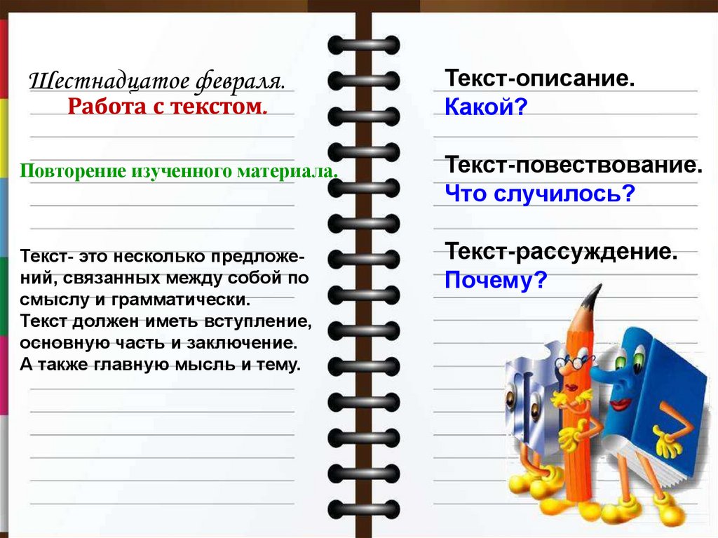 Шестнадцатое февраля.Текст-описание.