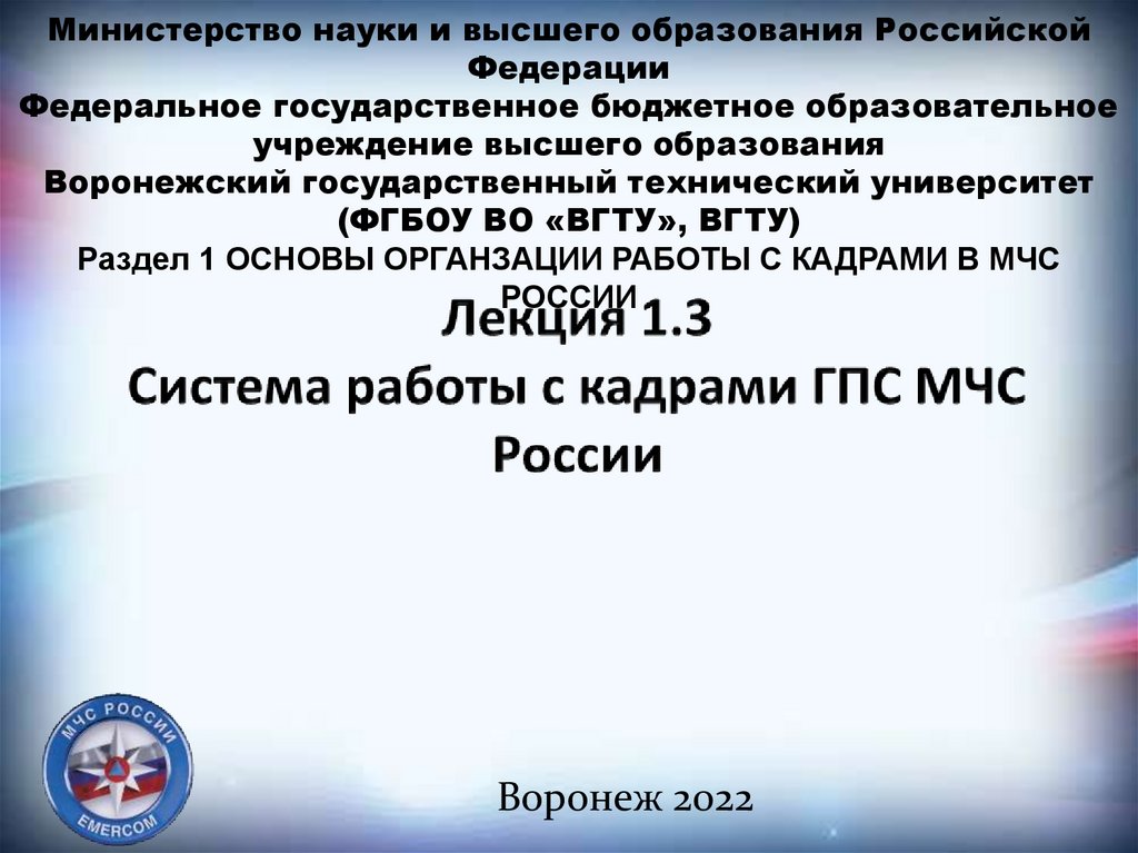 Раздел 1 ОСНОВЫ ОРГАНЗАЦИИ РАБОТЫ С КАДРАМИ В МЧС