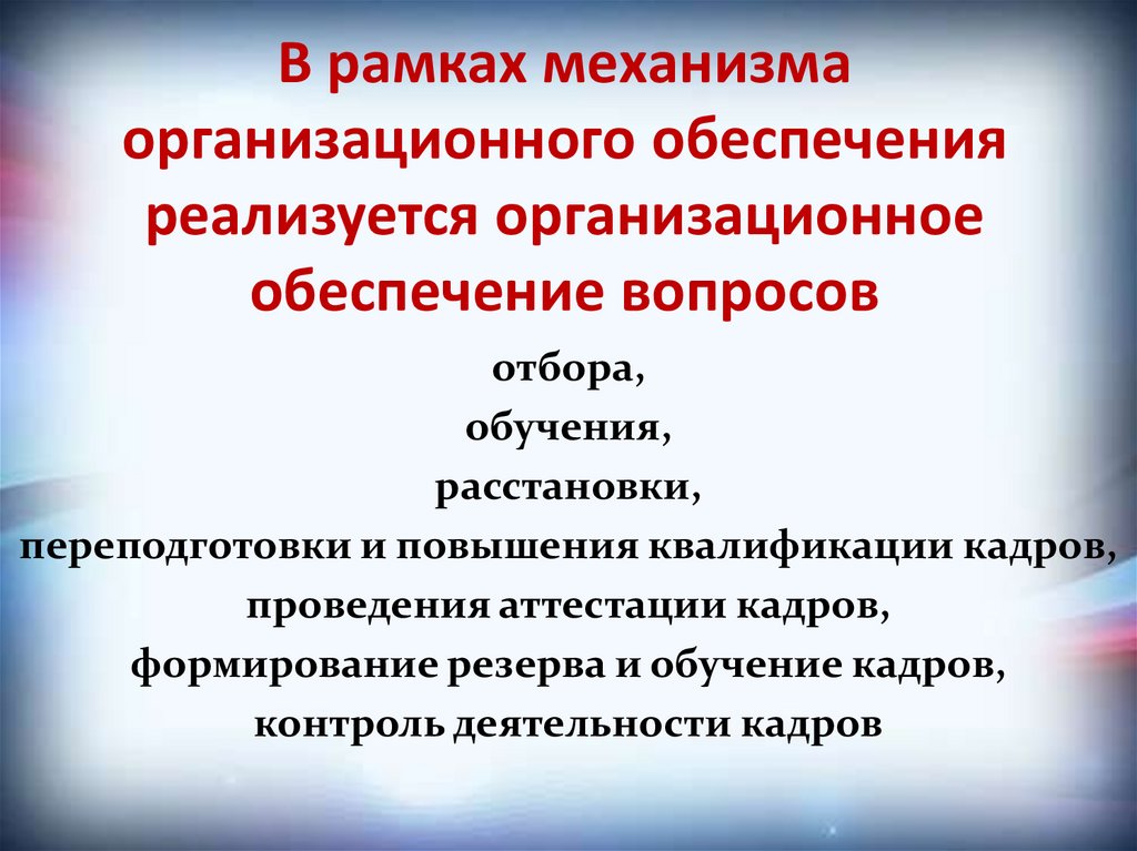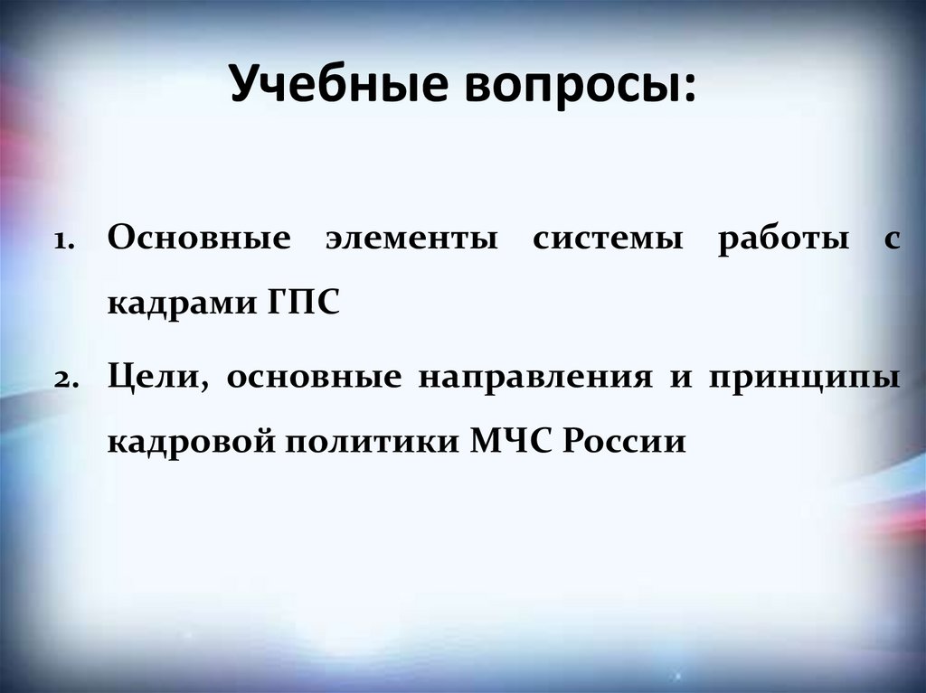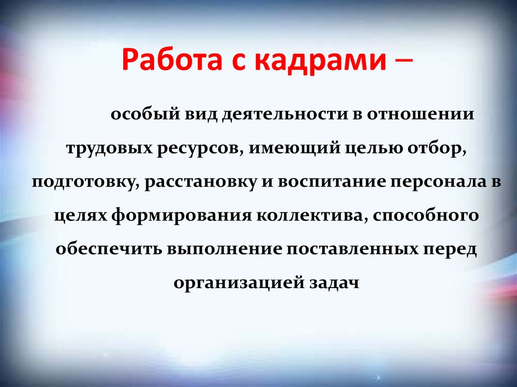 Вопрос 1. Основные элементысистемы работы с кадрами