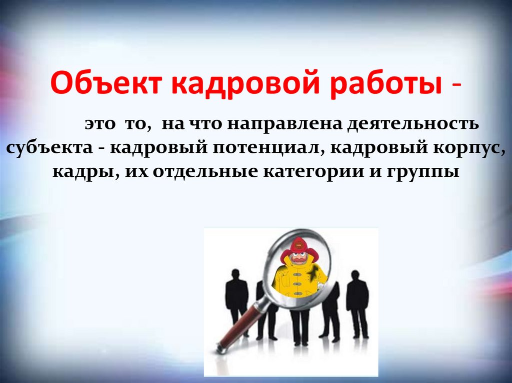 Объект кадровой работы это то, на что направлена деятельностьсубъекта - кадровый потенциал, кадровый корпус,