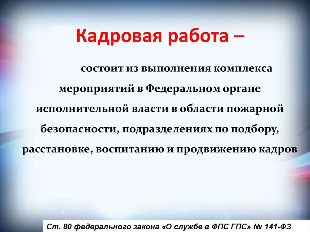 Кадры органов ГПС МЧС России– это совокупность лиц, в качестве